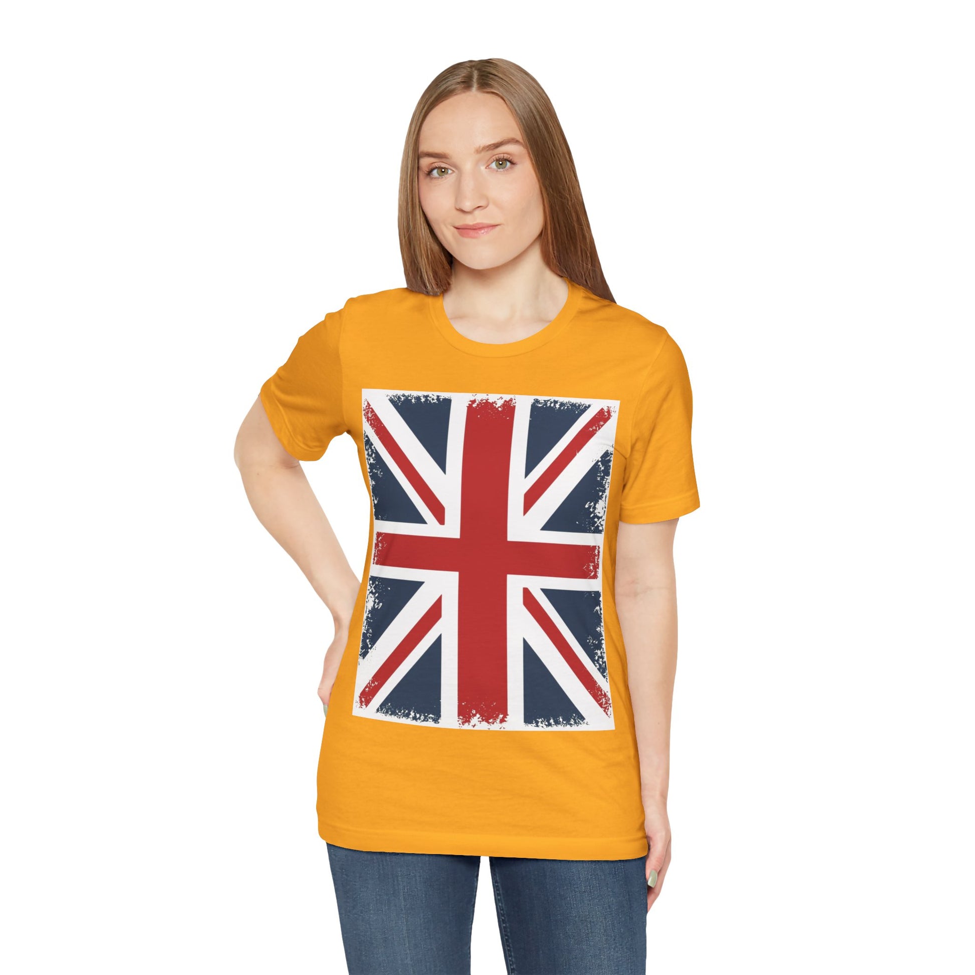 This UK Flag T-Shirt gives off a patriotic and stylish vibe, perfect for British pride celebrations or casual wear. It is relevant to those who love the UK and want to show their support. Great for holidays like the Queen's birthday or St. George's Day.